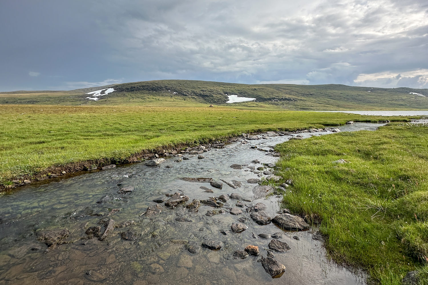 Det var först efter midnatt som Krögarn lyckades hitta rödingarna på riktigt, de stod vid utloppet av en bäck med iskallt smältvatten från snön som fortfarande låg kvar här och där uppe på 1000 meter över havet.