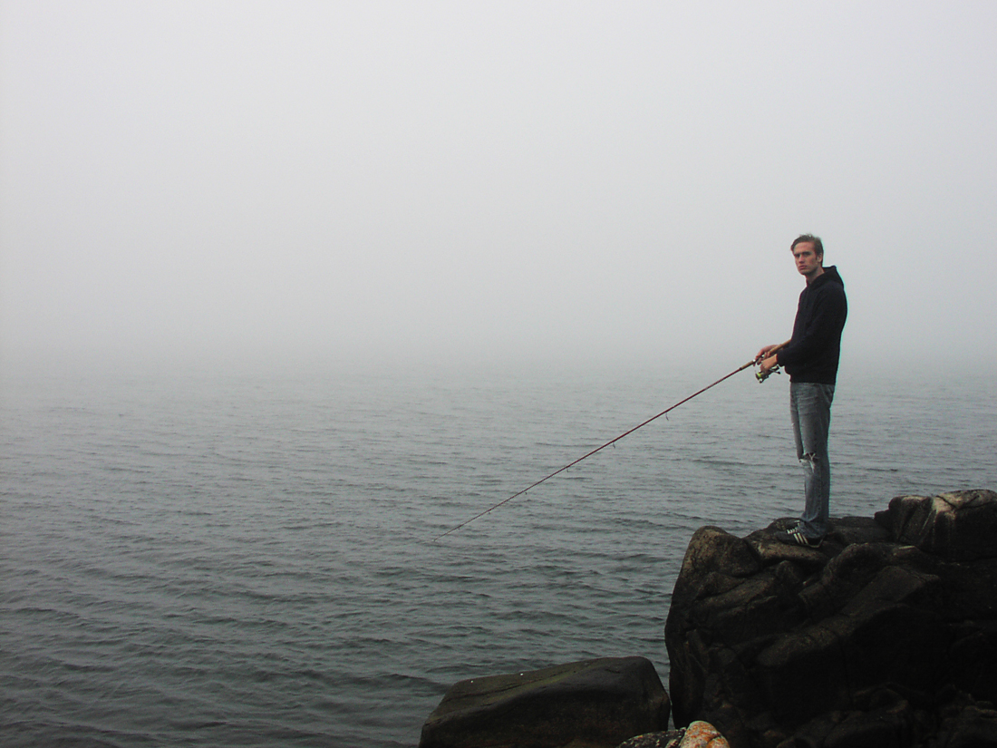 Vi passade på att fiska lite när vi var nere på västkusten för att kitesurfa med mera. Det var en vacker och solig dag, var dock en del dimma där vi fiskade. Krull tog en liten torsk och en ännu mindre bergylta.