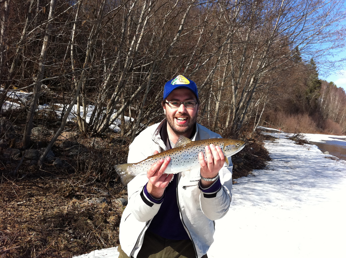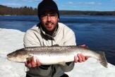 2011-04-18 Bergeforsen Dagbok 2011 Nicke och Webbe flög upp till Sundsvall och Bergeforsen för en dags havsöringsfiske. Totalt så landades fyra öringar, Webbe tog den största som vägde in på 3,3 kg. Alla tog på rödsvart Toby 40 gram. Tagged: bergeforsenHavsöringsfiske