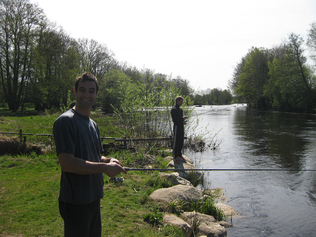 Vi vaknade till fortsatt dåliga väderförhållanden för kustfiske och bestämde oss därför att testa lyckan i Mörrum vilket skulle visa sig bli ett dyrt och fisklöst kalas. Fiskekorten gick på 500 kr per man, och Olle gjorde det ännu dyrare för sig själv genom att (av misstag) knäcka sitt eget spö och kasta bort ett gäng drag.