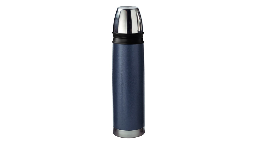 Elegant blå termos som rymmer 0,75 liter. Smart funktion med dubbla muggar gör det enkelt att dela på innehållet. Ergonomisk och isolerad skruvkork som förhindrar spill. Rostfritt stål av högsta kvalité, perfekt för gravyr, och du väljer själv text och typsnitt.